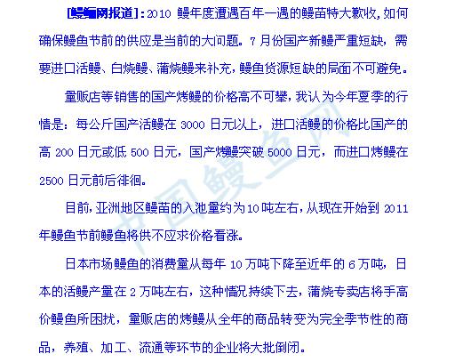 中国鳗鱼网(www.chinaeel.cn)所刊登的所有内容,包括但不限于图片、文字及多媒体形式的新闻、信息等,未经著作权人合法授权,禁止一切形式的下载、转载使用或者建立镜像。获得合法授权的,应在授权范围内使用,必须为作者署名并注明“来源:中国鳗鱼网”字样。违反上述声明者,本网将依法追究其相关法律责任。