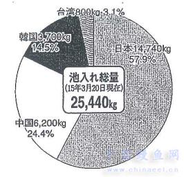 日本共入池鳗苗16.3吨,占鳗苗入池总量的61.31%;