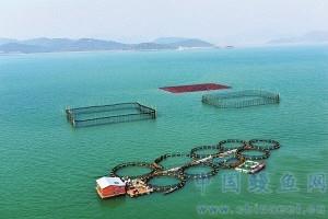 图为大黄鱼围网及分级养殖。