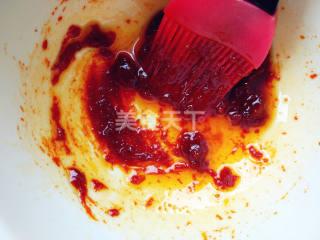 5、韩式辣酱加少许油和孜然粉,调成能涂开的粘稠度