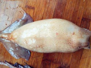 1、鱿鱼洗净备用。土豆洗净去皮,切条,盖上保鲜膜入微波炉叮3-5分钟