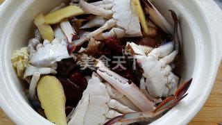 螃蟹适量、白菜适量、香菇适量、盐适量、姜片适量、大枣适量、花椒适量、糖适量、胡椒面适量