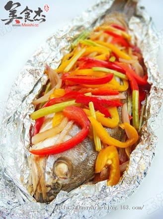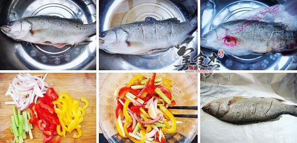 8.用锡纸把鱼完全包裹住,边上捏实,放入预热到200度的烤箱,中层,20-30分钟(根据鱼的大小)。