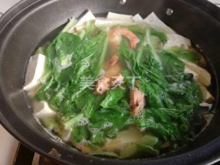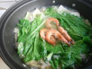 6、下入大虾,小白菜同煮。