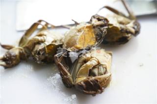 闸蟹2只、冷肉末200克、洋葱1个、菜椒1个、姜适量、香菇豆豉酱1大茶匙、酱油适量、色拉油适量