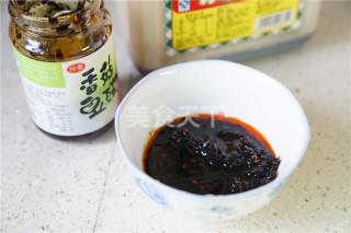 2、锅里加油下姜爆香,将冷肉末改刀下锅煎炒出味。