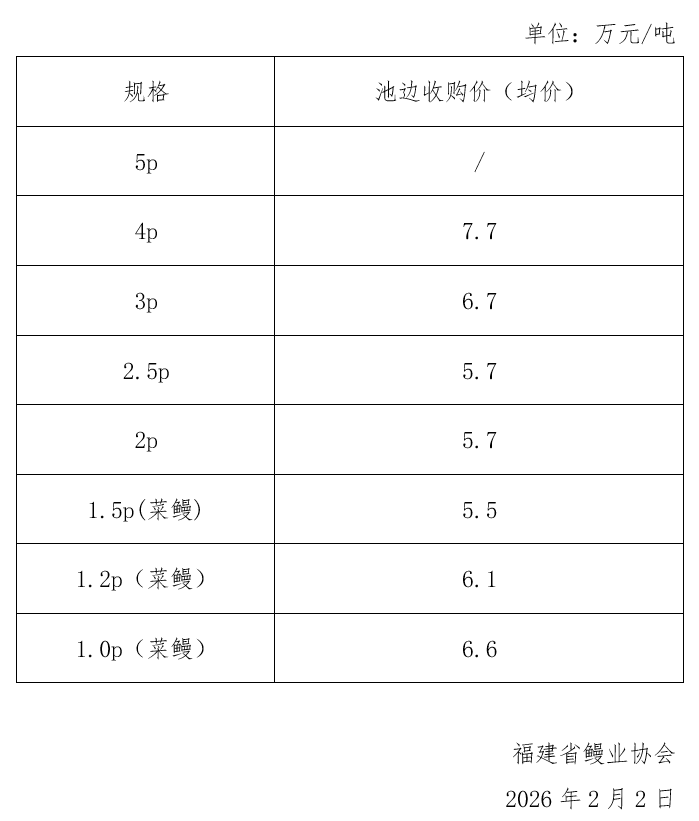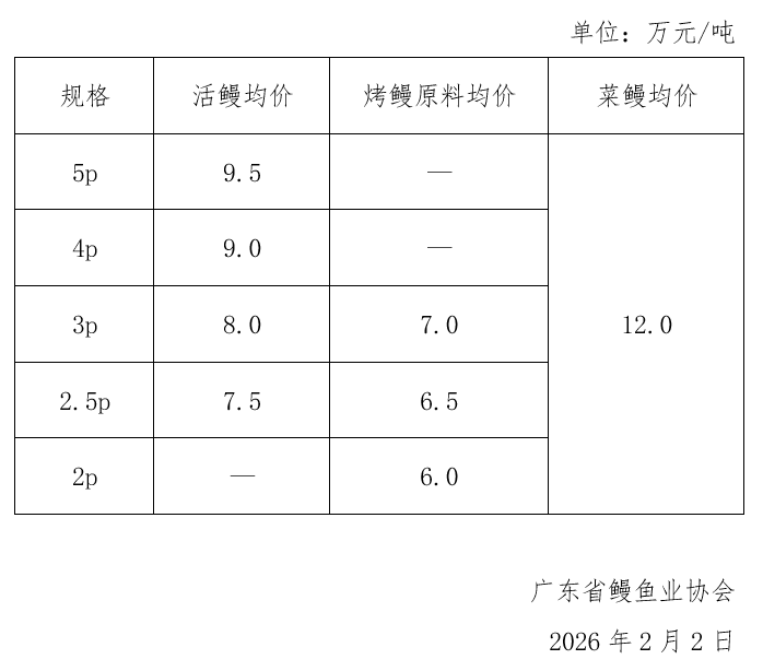 福建美洲鳗鲡市场行情周报由福建省鳗业协会牵头提供,广东日本鳗鲡市场行情周报由广东省鳗鱼业协会牵头提供,由中国渔业协会鳗业工作委员会统一组织发布。