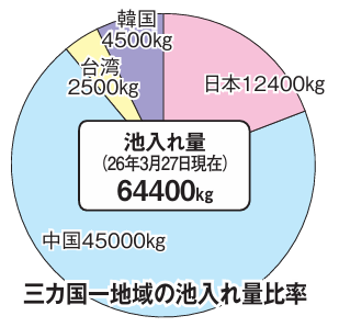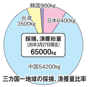 中国大陆:主要渔场捕捞量维持在300-400公斤,相关人士表示这一数字“既不增加也不减少”,累计采捕量达到50.8-51.8吨。