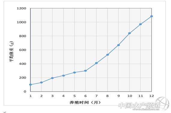 下图为明波水产有限公司图示明波公司循环水养殖珍珠龙胆生长速度: