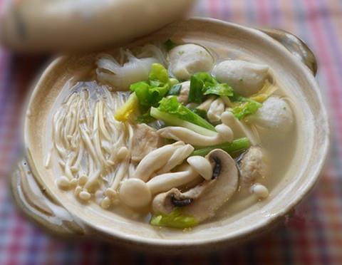 5.鱼丸浮起后,把蘑菇放入继续烧开。