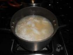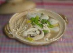 2.鱼头汤烧开,把姜片,豆腐,鱼丸和魔芋丝放入。
