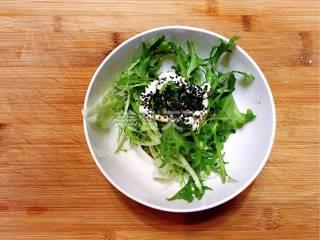 3、苦苣放入碗里,加入生抽、橄榄油、沙拉酱、半个柠檬汁拌匀。