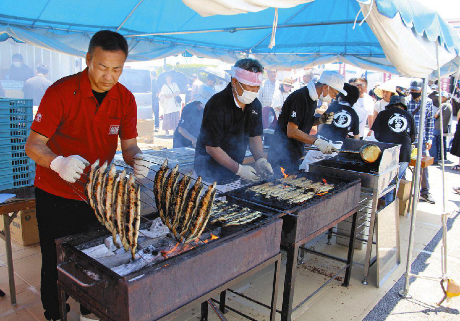 三河一色鳗鱼节旨在广泛传播鳗鱼文化,依托当地在日本名列前茅的鳗鱼产量优势,成为展现一色町鳗鱼产业风采的重要平台。其常规举办时间为每年6 月上旬,今年的鳗鱼节是5月31日(周六)和6月1日(周日)举行,为期两天。第一天不凑巧遇到雨天,第二天虽然有强风但是天公作美迎来了晴天。会场内聚集了诸多慕名而来的游客,两天合计到场3.8万人,现场一片人气爆棚充满活力的景象。