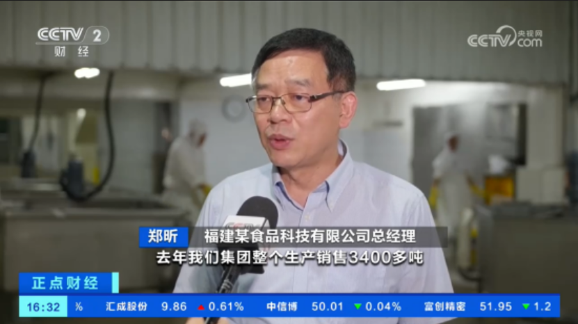 福建某食品科技有限公司总经理 郑昕:去年我们集团整个生产销售3400多吨,同比增长了133%。寿司切片、切块、切丁,客人需要的一些定制化的产品,看这个产品怎么运用到火锅上面去,烧烤上面我们国内这块也在增加。