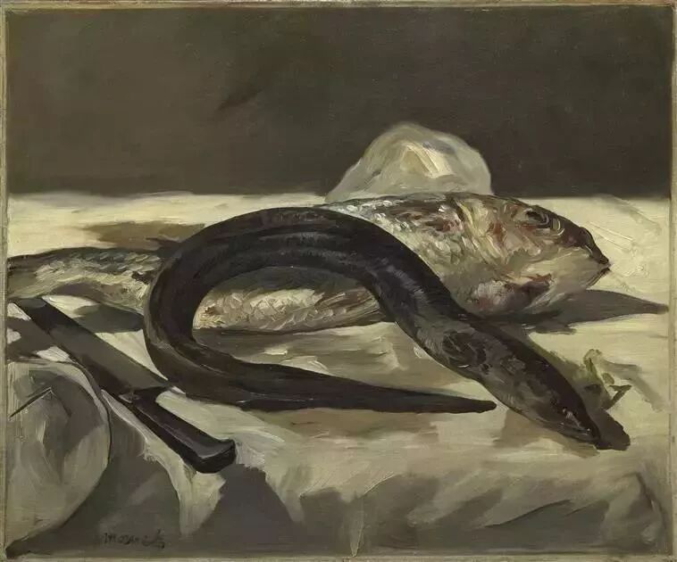 在十九世纪法国印象派画家马奈的静物画中,鳗鱼与其他海产并置,其光滑的皮肤与独特的形态为画面提供了丰富的质感与色彩。此时的鳗鱼,是被观察、被描绘的审美客体,更是即将被消费的自然资源,它体现了人类一种朴素的实用主义世界观:自然万物,皆为生计与审美服务。